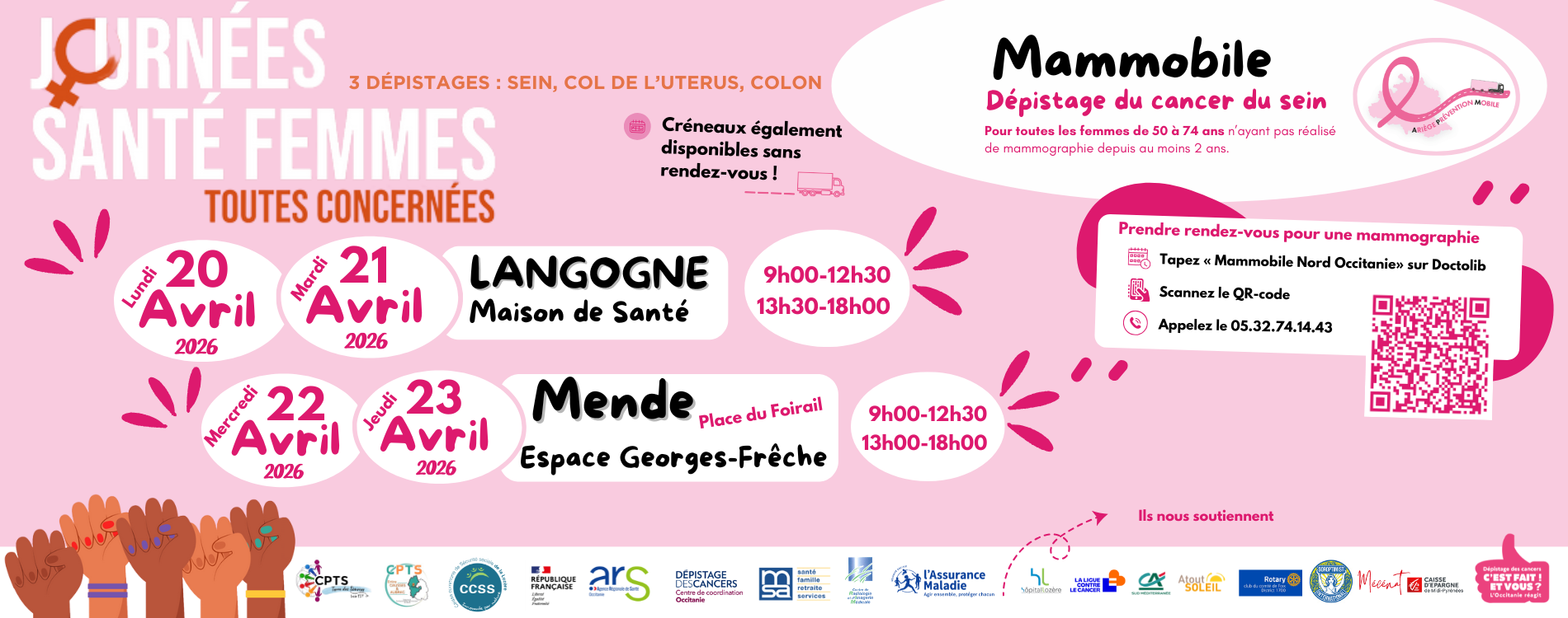Afin de faciliter l'accès aux dépistages des 3 cancers les plus courants chez les femmes, la CCSS de la Lozère, la CPTS Terres de Sources LozÃ