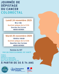 La CCSS organise deux demi- journées de dépistage du cancer colorectal à l’accueil de la CCSS à Mende.
