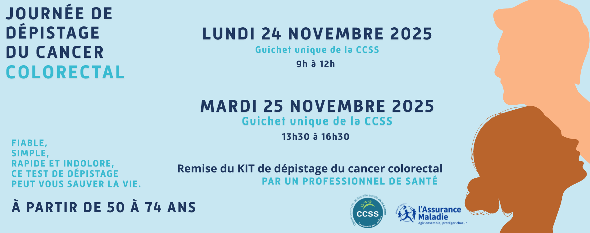 La CCSS organise deux demi- journées de dépistage du cancer colorectal à l’accueil de la CCSS à Mende.